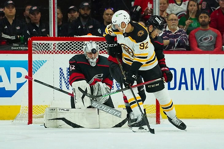 В плей-офф НХЛ продолжается жара – сегодня во всех сериях, кроме одной, счет сравняли. Не повезло «Бостону»: он второй раз подряд не нашел приема против «Каролины» и едет на домашний стадион при тревожных 0-2 в серии – а это серьезный намек на то, что недавний финалист вряд ли отыграется против лучшей обороны лиги.