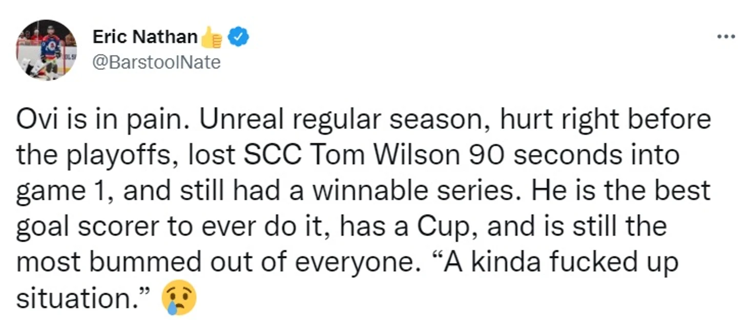 Журналист BarstoolSports Эрик Натан посвятил Ови твит, с которым тяжело не согласиться.