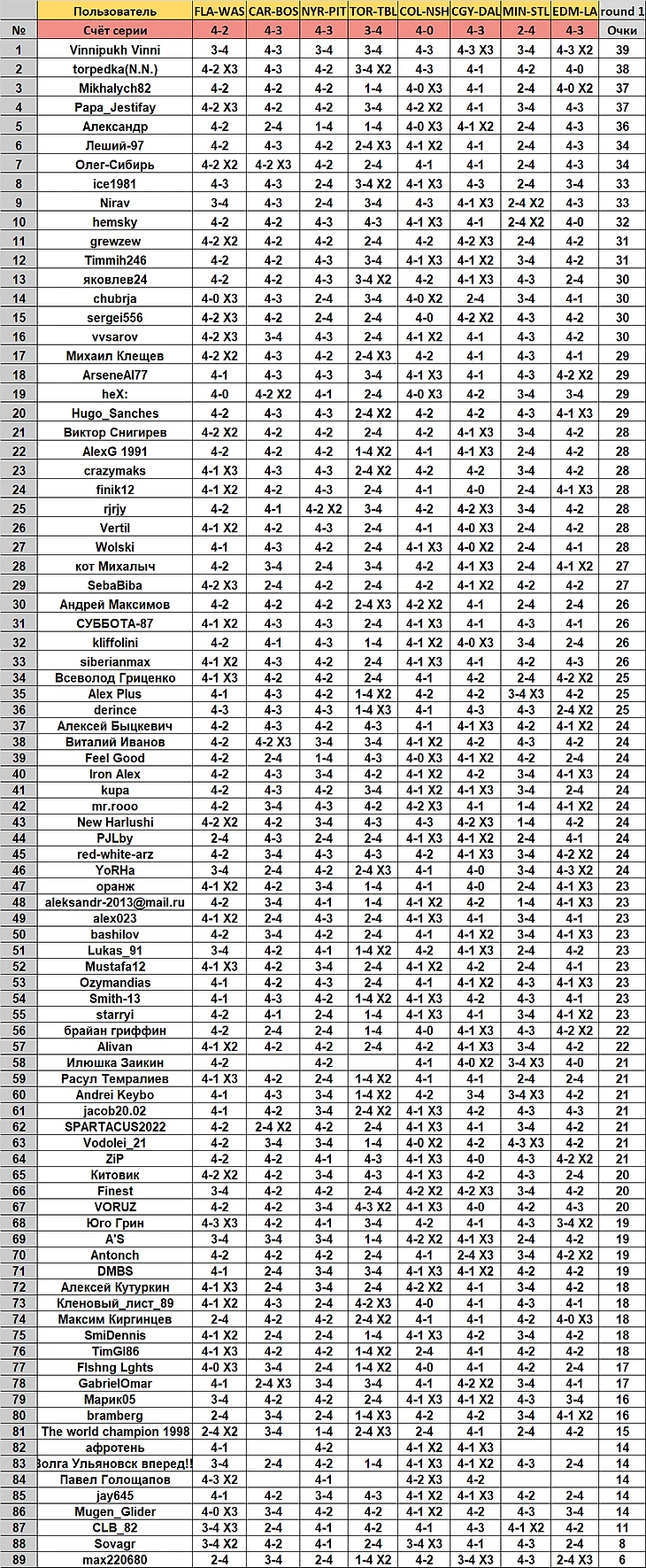 Турнир прогнозов. Stanley Cup 2022. Итоги первого раунда и прогнозы на 2-й раунд