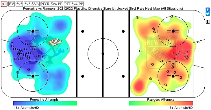Тем, кто говорит про эпоху, мне хочется показать карту бросков за все семь матчей серии с «Рейнджерс».