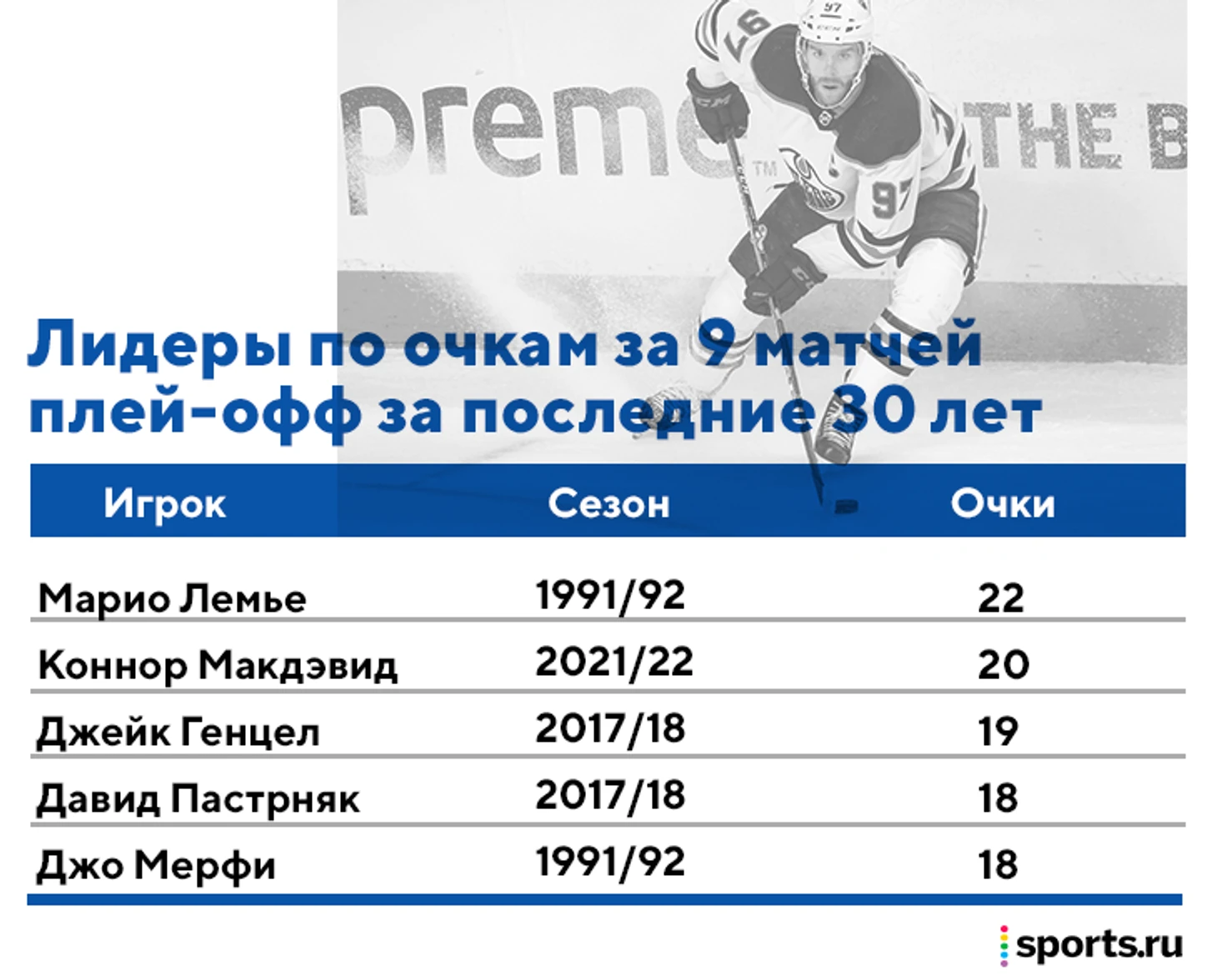 Занимательная статистика, которую показали в эфире Sportsnet прямо по ходу второго раунда Битвы за Альберту: за 9 матчей плей-офф Коннор Макдэвид собрал 20 очков, и такого не было 30 лет. Да, последний раз так выжигал Кубок Стэнли только Марио Лемье – набирал 22 балла за 9 матчей, и это был пик великого канадца. Кстати, Лемье тогда выиграл второй Кубок Стэнли.