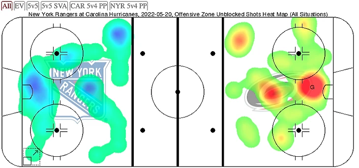 Видите этот призрак слева? Это броски атаки, состоящей из таких игроков как Мика Зибанежад, Артемий Панарин, Алексис Лафреньер и Крис Крайдер.