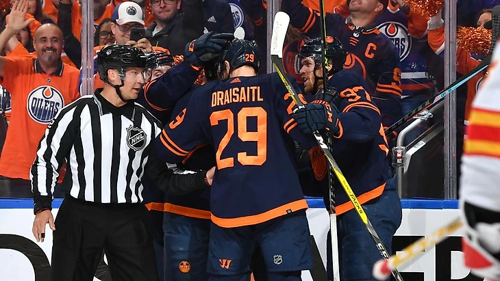 "Эдмонтон Ойлерс"-"Калгари Флэймз" 5:3.В первом периоде хозяева забросили 3 шайбы.Леон Драйзайтль отдал 3 результативные передачи,Эвандер Кейн и Райан Ньюджент-Хопкинс забросили по 2 шайбы,Коннор МакДэвид отдал 2 результативные передачи,Майк Смит отразил 29 бросков."Нефтяники" ведут в серии 3-1.
