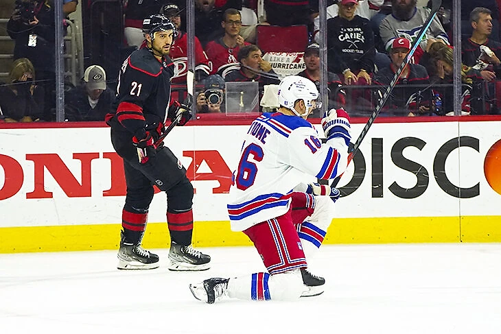 Не изменил. С самого начала серии «Каролина» была предсказуема и читаема в атаке, силовое давление трех нападающих «рейнджеры» встречали всей пятеркой и этой же пятеркой обволакивали тройку, отрывали ее от защитников и обезвреживали. Можно сказать и так – и Ахо, и Свечников (особенно) провели слабые серии, но в целом не очень было понятно, на какие связки рассчитывал Бринд′Амор. Какие звенья должны были придумать, как и за счет чего взломать плотную защиту Нью-Йорка?