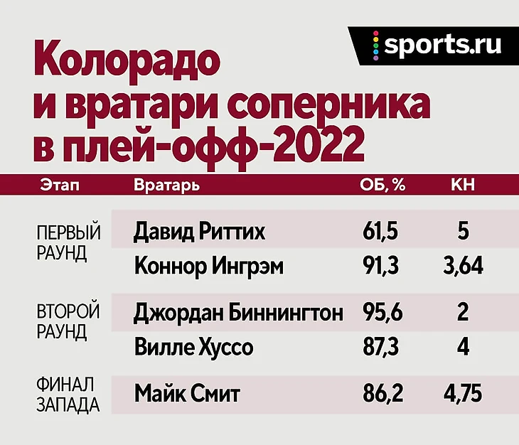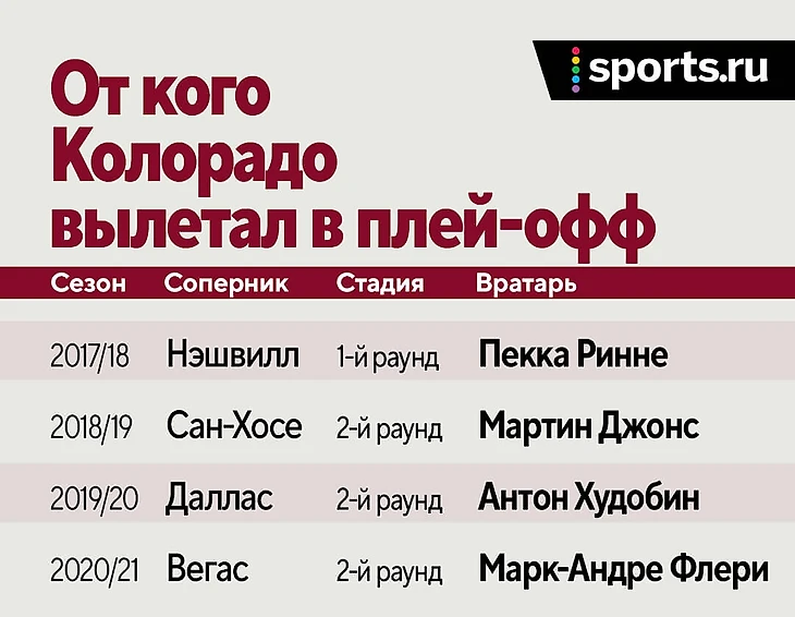 И здесь стоит отметить, что «Колорадо» все равно сделал шаг вперед – ведь пару лет назад команда отлетала во втором раунде от Мартина Джонса и Антона Худобина, а с топ-вратарями за последние пять лет сталкивалась всего дважды и оба раза проиграла.