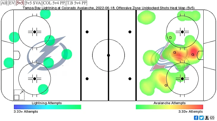 В 5-на-5 «Тампа» наиграла на рекордные, катастрофические xG = 0,35, а карта бросков выглядит так, будто команда сегодня в принципе не выходила на лед (хотя по факту выходила, и потратила довольно много сил – и не все зря).