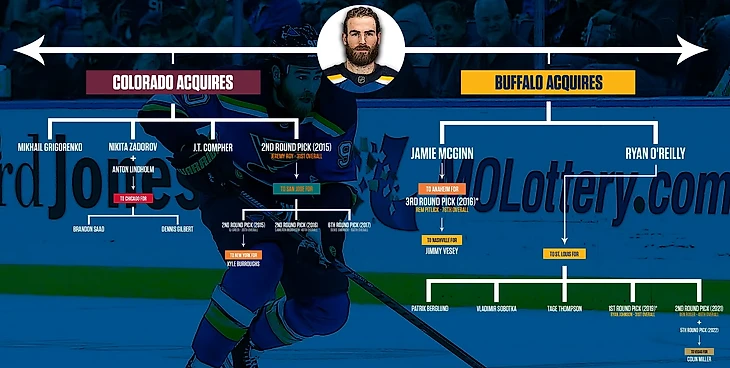 Даже если убрать за скобки всю эту ветку с драфт-пиками, одно только присутствие в команде Задорова и Комфера сделало "Колорадо" всю кассу и помогло выиграть этот обмен. Но вот было ли всё так кошмарно для "Баффало"? Давайте разбираться. Начнём с Джейми МакГинна, который сыграл за "клинков" 63 матча, набрал 27 очков, а ближе к концу сезона был обменян в "Анахайм". Обменян на пик в 3 раунде драфта 2016 года, который "Баффало" быстренько скинул в "Нэшвилл" на Джимми Визи, который провёл в клубе год и набрал 20 очков. Ну а теперь к главному. Райан О'Райлли за 224 матча в свитере "Баффало" набрал 176 очков - это хорошие цифры, особенно для форварда оборонительного плана. Будучи игроком "клинков" он номинировался на Селки Трофи. Но как бы не был хорош О'Райлли, его команда была полнейшим дном. Последний раз в плей-офф "Баффало" был 11 лет назад, этим всё сказано. Во время пребывания в "Баффало" О'Райлли однажды сказал, что буквально потерял любовь к хоккею здесь, но спустя 3 года его мучения закончились.