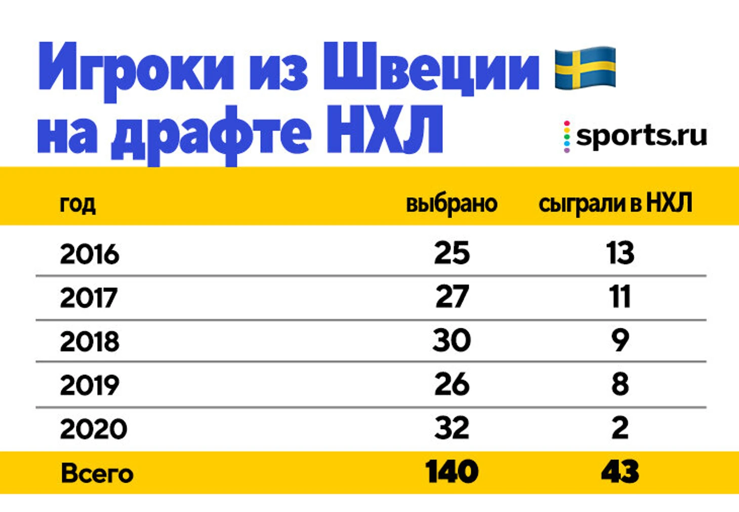 И это еще не все выплаты. Абсолютно новый пункт – шведская федерация и клубы теперь получают деньги за выбор игроков на драфте! В первом раунде – 35 тысяч долларов, со второго по седьмой – 20 тысяч. А если выбранного на драфте игрока подписывают после 15 августа, НХЛ выплачивает дополнительно 100 тысяч долларов в качестве штрафных санкций. Отличный стимул для шведских клубов, чтобы максимально доверять молодым.