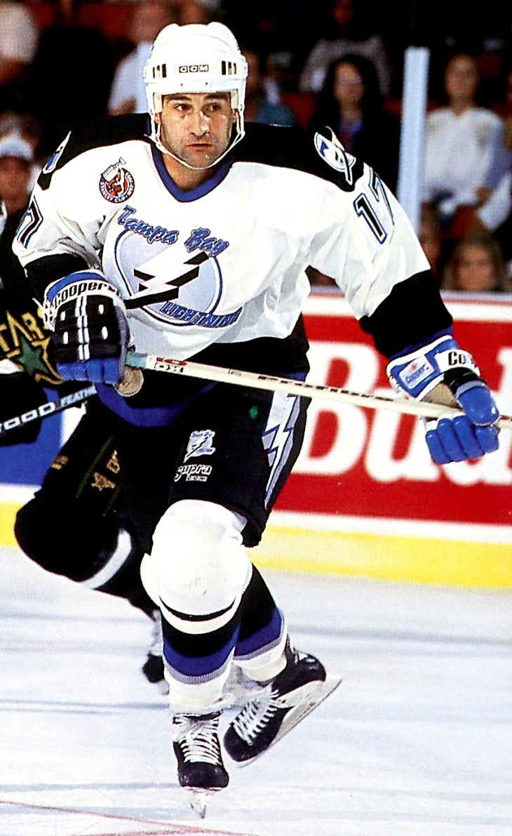 Крис Контос только что забросил первую шайбу в истории Тампы