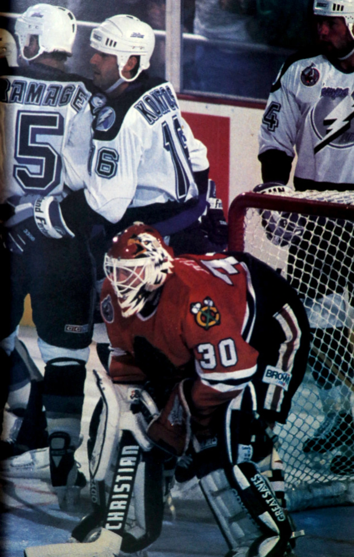 Чикаго не сдалось на милость победителя и продолжило атаковать ворота Янга. И вот уже вышибала Черных Ястребов Стю Гримсон по прозвищу Grim Reaper (вообще правильно это переводится как «Смерть с косой» или «Мрачный жнец», но в российских СМИ с подачи крайне противоречивого и неоднозначного Игоря Ларина это прозвище почему-то переводили как «Комбайн») от борта бросает по воротам, Брайан Нунан выигрывает борьбу сразу у двух защитников Молнии – Марка Бержевена и Джо Рики – и, проехав за воротами «по-бобровски», кладет шайбу в угол. 6-2.