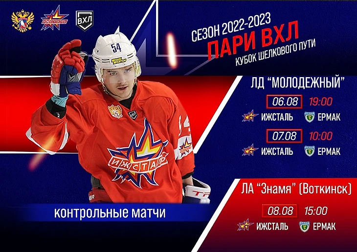 Не стоит забывать о том, что ЛД "Ижсталь" закрыт на реконструкцию. Поэтому 6 и 7.08 команды сыграют в ЛД "Молодёжный" (г. Ижевск, пр-кт Калашникова, 15), а третий матч пройдёт без зрителей в ЛА "Знамя" (г. Воткинск, ул. Орджоникидзе, 3)