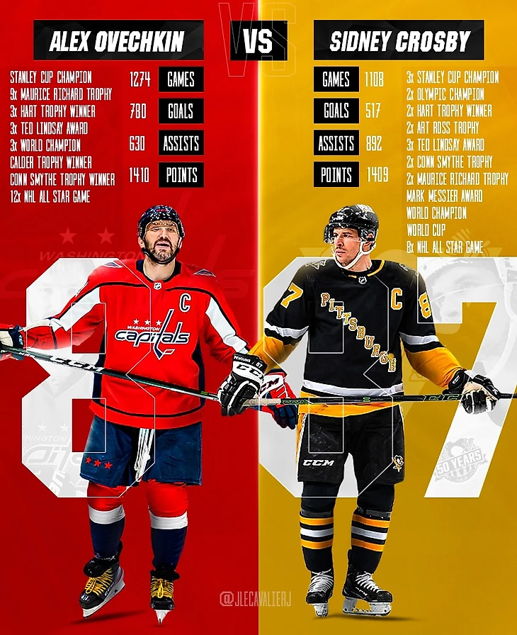 Первые номера разных драфтов (2004 и 2005), но из-за локаута карьера обоих стартовала одновременно с сезона 2005/06, с которого и началось главное противостояние личностей такого информационного масштаба как минимум современной эпохи хоккея. И спустя 17 сезонов в гонке по очкам у них практически равенство – 1410 (780+630) против 1409 (517+892) в пользу «Великой Восьмерки».