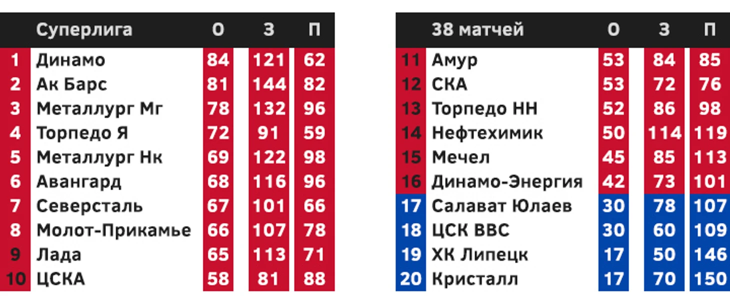 В самом верху таблицы ожидаемо оказались «Динамо» и «Металлург». Лишь в концовке, за счет серии из 10 побед подряд на финише, на второе место вклинился «Ак Барс» – наиболее результативная команда чемпионата. Самыми забивными тройками регулярки стали пермяки Гулявцев, Бардин и Ахметов, а также омичи Затонский – Якубов – Сушинский. Третьим было новокузнецкое звено Евтюхина с Епанчинцевым и Ткачуком. Борьбы за попадание в плей-офф зрители не увидели, участники игр на вылет определились заранее.