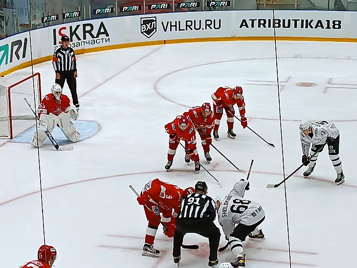 Первый период "сталевары" провели замечательно: Александр Беляев открыл счёт в начале, закинув шайбу в девятку, а на протяжении практически всего 20-минутного отрезка команда активно атаковала и прессинговала