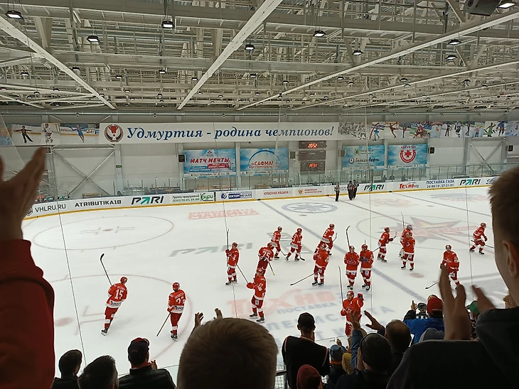 "Ижсталь" неплохо провела свой первый матч сезоне. Об этом говорят громкие овации от фанатов: "Молодцы! Молодцы! "