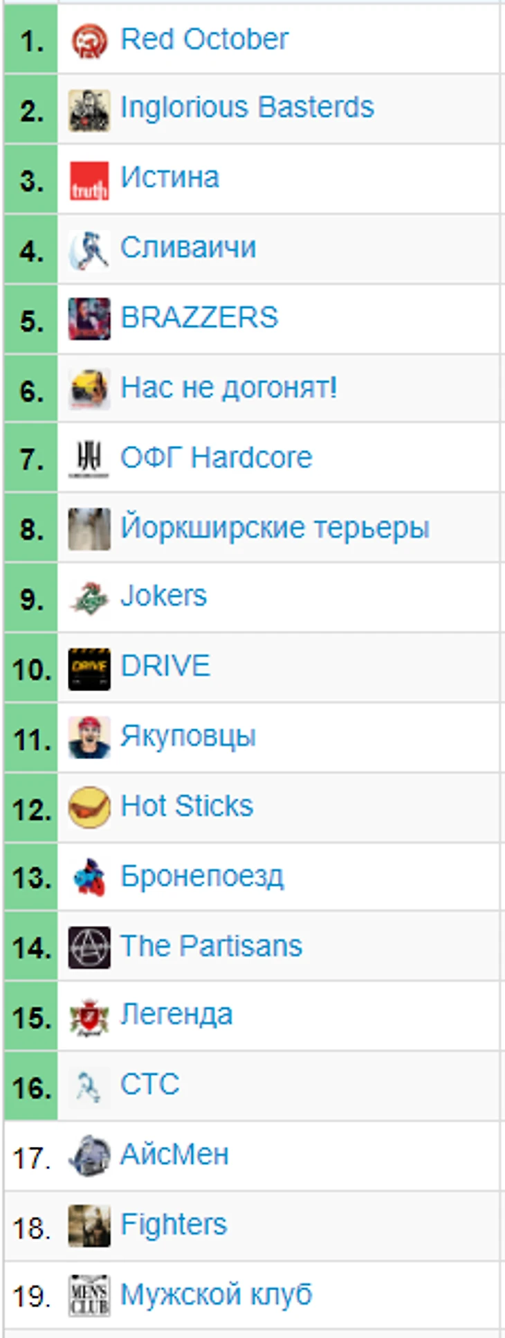 Taras Lvov (UA), Grodnenski (УсПей), Kvn261182 (Unstoppable toughguys)