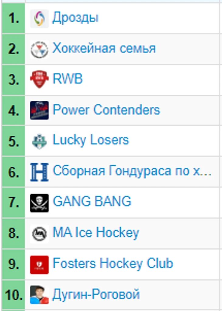 Плюс победитель регулярки лиги AHL Дрозды, призеры Хоккейная Семья и RWB, победитель Кубка Стэнли лиги АХЛ Lucky Losers, и вместо Gordie Howe Hat Trick команда Power Contenders, занявшая 4 место