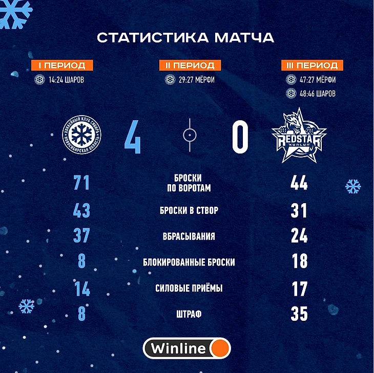 По традиции, в конце обзора каждого матча, обзор игры вбрасывании. Суммарно новосибирская дружина выиграла дуэль на точке со счетом 37:24. У хозяев пять человек вставали на точку. Это четыре центральных нападающих и Бек. В этот раз 4 из 5 имеют отличные цифры. Основин 13 из 19 – 68%, Яковлев подтянулся и показал гроссмейстерские 8 из 11, и более 70%. Пьянов сыграл лучше привычного 10 из 17 – почти 60%, Бек – 4 из 6 – 67%. И только Спиридонов не смог поддержать одноклубников и показал скромные 2 из 8 – 25%.