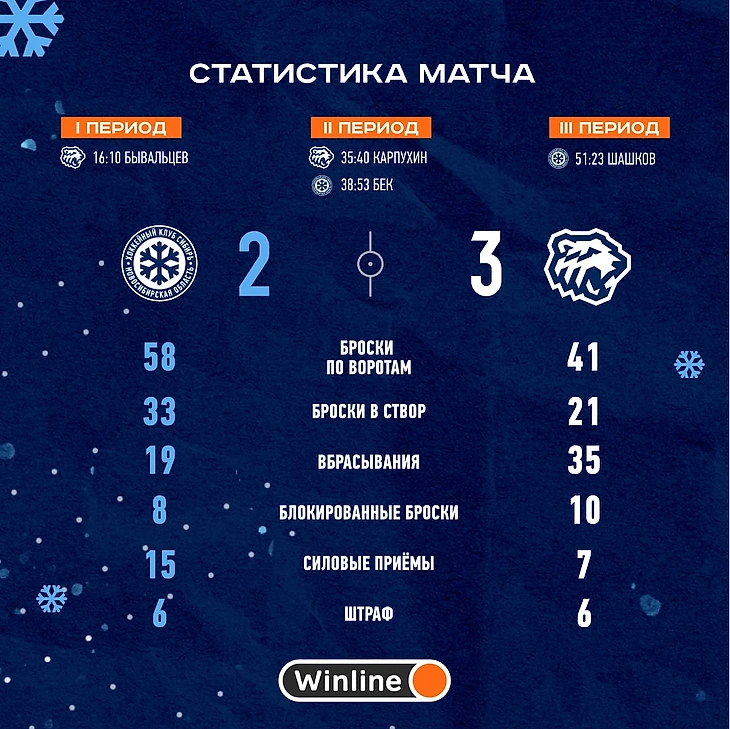 Игра переходит в овертайм, а затем и в буллитную серию. В напряженной серии штрафных бросков победу одерживает Сибирь. Точны оказались Пьянов и Бек.