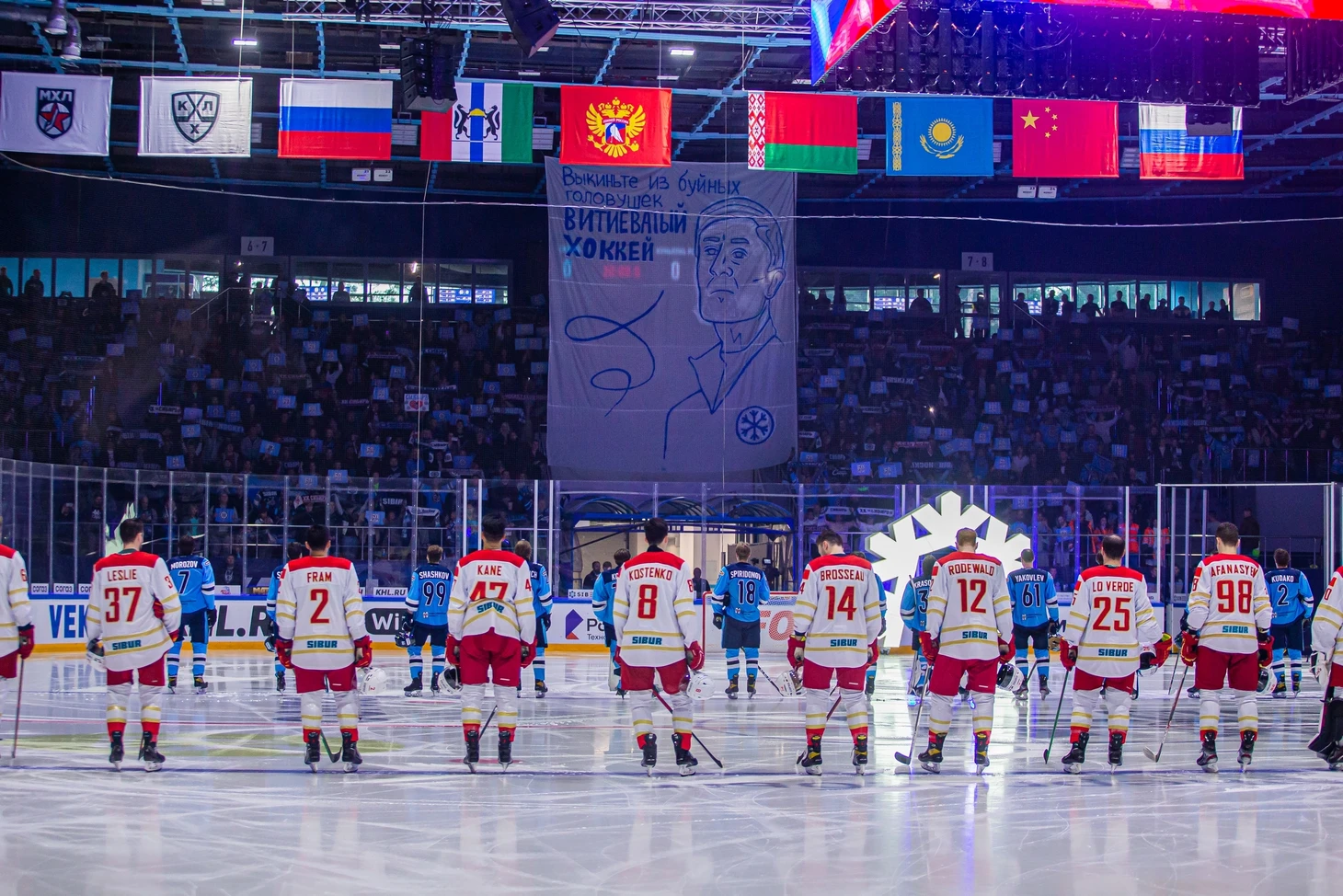 По сравнению с игрой в Мытищах двумя днями ранее у новосибирцев произошли некоторые изменения в составе. Дисквалифицированных Чесалина и Голубева, заменяли Коротков и Спиридонов. Вернулся в состав Владимир Бутузов, заменивший Антона Назаревича во второй тройке нападения. Ворота с первых минут защищал Антон Красоткин. Билеты на игру были раскуплены все до единого, а это значит, что Сибирь была готовадебютировать в обновленном ЛДС перед родными трибунами.