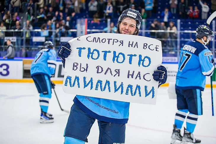 «Несмотря на все тютютю, вы для нас мимими». Хоккеисты «Сибири» принесли на игру плакаты и выдали шикарный камбэк
