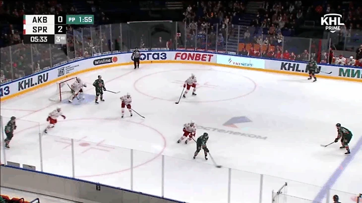 Есть сложности с абсолютно базовыми вещами, такими как вход в зону. Это особенно важно, когда большинство начинается с проигранного вбрасывания и выброса от соперника. Войти назад не получается ни индивидуально, ни через пас. Казанцы часто используют «drop pass», когда игрок в средней зоне отбрасывает шайбу назад (или просто оставляет ее) партнеру на скорости. В теории это должно стянуть противника в одну сторону и создать пространство для скоростного прохода. В реальности игроки просто пытаются пролезть через центр, но обычный заборчик на синей линии становится для них непреодолимой преградой.