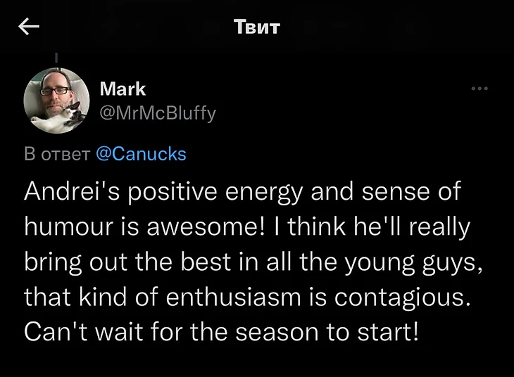 Сам же Андрей пока недоволен уровнем своей игры, что это в очередной раз показывает его мотивацию. И если он правда еще прибавит – нас ждет бомбовая регулярка еще с одним интересным русским хоккеистом.