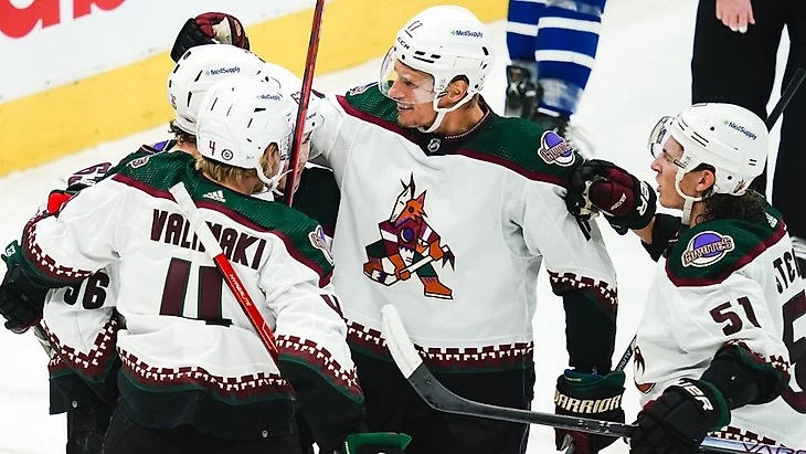 "Торонто Мэйпл Лифс"-"Аризона Койотс" 2:4.Николай Ричи с Кристианом Фишером и Шейном Гостибером набрали по 2 очка (1+1),Карел Веймелка отразил 26 бросков.