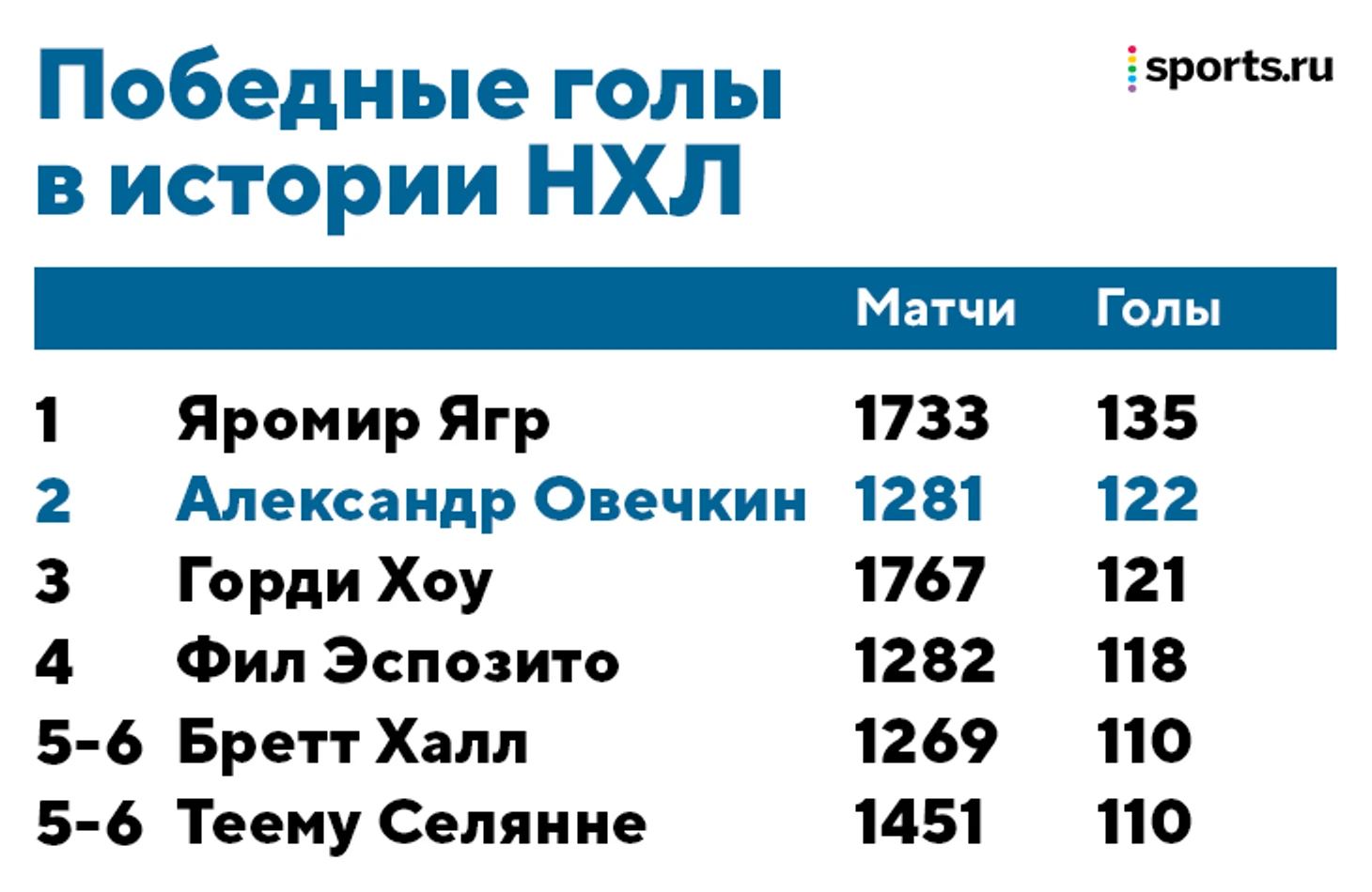 Всего один броско – и ты уже обходишь великих. Шайба стала победной в матче – и по этому показателю капитан «Вашингтона» обошел легендарного Горди Хоу. Забавно, но на первом месте в этой гонке совсем не Гретцки.
