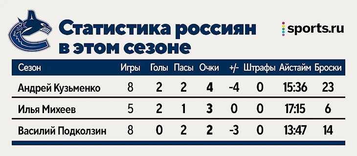 Русские игроки добыли для «Ванкувера» первую победу в сезоне: у Михеева дубль, Кузьменко набрал 1+1