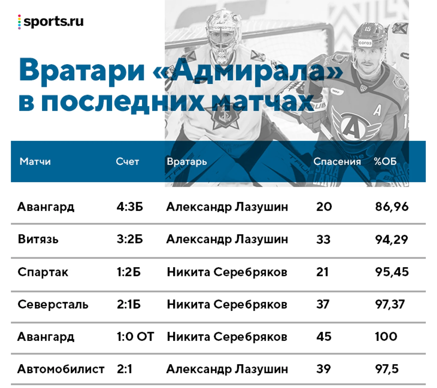 В таких тяжелых матчах, где все на тоненького, очень важно, чтобы вратари спасали – и у «Адмирала» сейчас оба в большом порядке: забирают буллитные серии, тащат много бросков. На двоих в последних матчах они сделали 195 сэйвов.