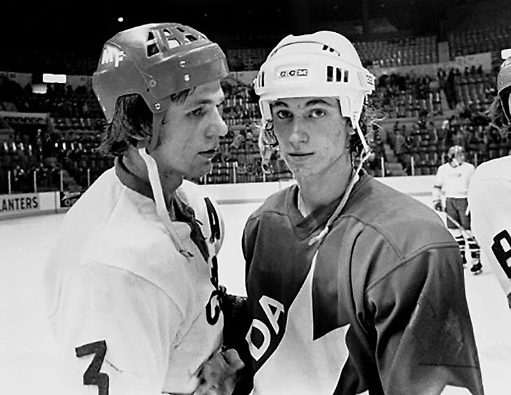Гретцки: В 1972-м году приехали русские. И нам все про них было интересно. Они большинство по-другому разыгрывали. Если они доезжали до синей и не видели возможности войти в зону, то они не забрасывали туда шайбу, а откатывались назад и начинали все сначала. Такой игры с шайбой мы толком и не видели никогда – разве что в исполнении Бобби Орра.