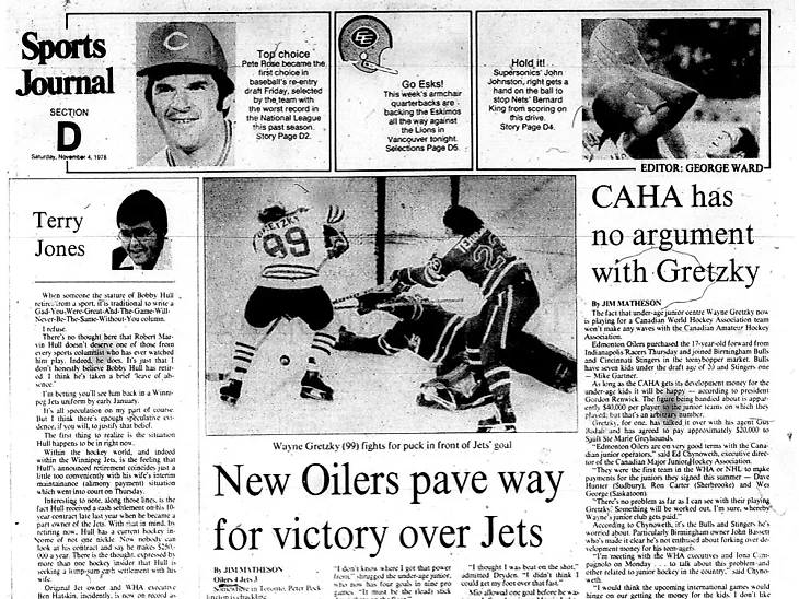 В копилку информации, Гретцки дисквалифицировали по детям за то, что он подделал информацию о проживании в другом городе, чтобы сыграть за команду AAA. В его родном Брэмптоне была только команда уровня A, а ему хотелось играть выше уровнем, поэтому заявился за команду другого города. Лига в итоге сочла это махинацией, отец Гретцки с ними судился, но ничего не добился. В итоге ему пришлось идти еще выше уровнем в Junior B.