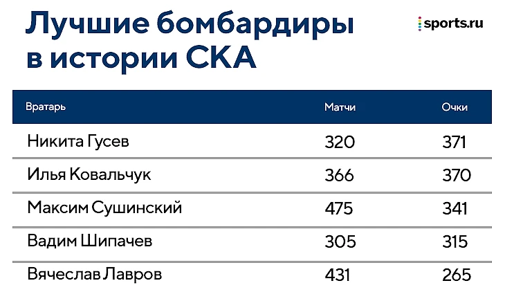 Забросив в первом же матче, Никита Гусев умудрился стать рекордсменом клуба – теперь он лучший бомбардир в истории СКА с 371 очками в 320 матчах. Свитер с символическим числом вручил лично Роман Ротенберг после игры.