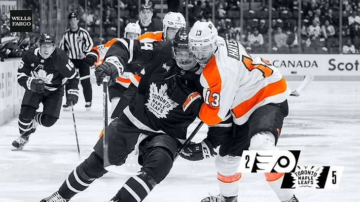 "Торонто Мэйпл Лифс"-"Филадельфия Флайерс" 5:2.Джон Таварес набрал 4 очка (3+1),Остон Мэттьюз набрал 2 очка (1+1),Митчелл Марнер и Марк Райлли отдали по 2 результативные передачи,Илья Самсонов отразил 23 броска.У гостей Тревор Конечны отдал 2 результативные передачи."Кленовые листья" прервали серию из 4 поражений подряд.