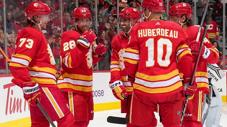 Юбердо (Андерссон, Ханифин), Манджапане (Лучич, Кадри), Ричи (Коулман), Тоффоли (Линдхольм, Ружичка), Линдхольм (Тоффоли, Кадри), Ружичка (Линдхольм, Тоффоли)