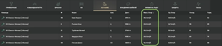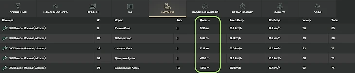Тут есть два типа данных. Первые – это простые и понятные данные – броски, вбрасывания, передачи, борьба. Вторые ­– так называемая «продвинутая статистика», параметры, которые могут помочь глубже проанализировать игроков. Еще понравились данные о физической активности хоккеистов, их скорости, дистанции, рывковая работа. Все данные поступают онлайн, и можно сразу увидеть, кто из игроков выкладывается, а кто недорабатывает.