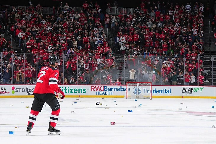 Беспредел в Нью-Джерси: фанаты бросали на лед еду и стаканы из-за трех (!) незасчитанных голов