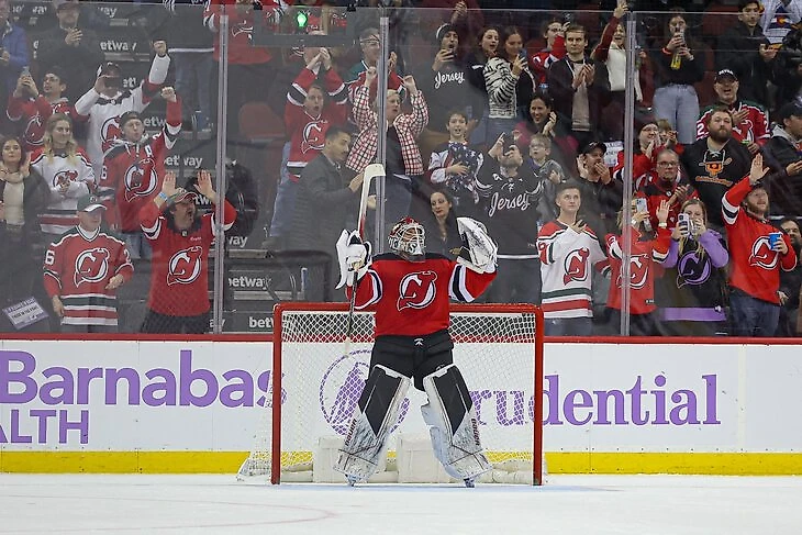 «Нью-Джерси» повторил клубный рекорд по длительности победной серии в регулярках НХЛ – 13 матчей подряд. До рекордных показателей лиги было не так уж далеко – «Питтсбург» собрал 17 в сезоне-1992/93 – но серия «Девилс» прервалась в матче с «Торонто» (1:2), в котором им не засчитали аж три гола.