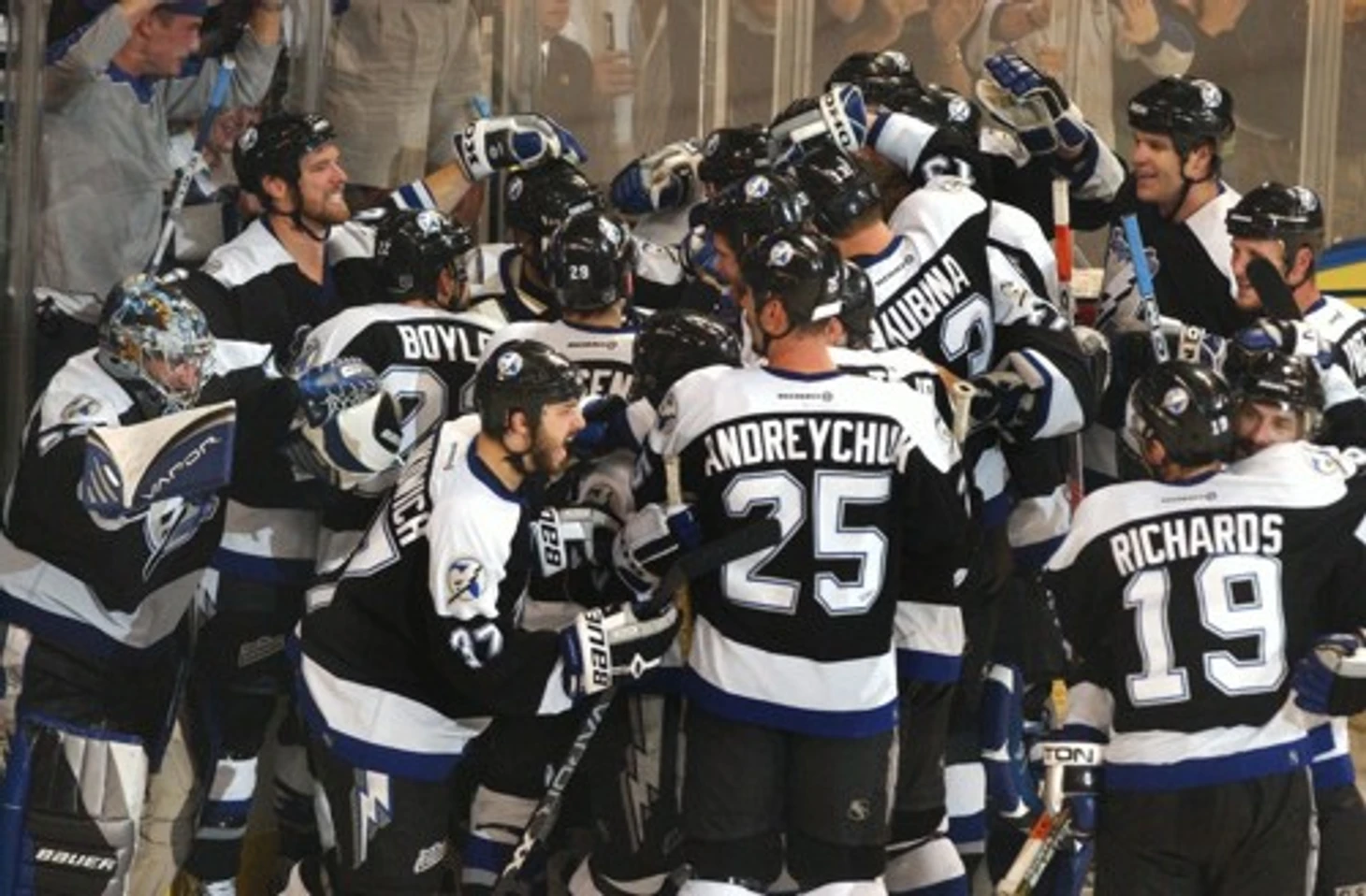 Шайба влетает в сетку ворот над левым плечом Колцига. 2-1 в матче. 4-2 в серии. Первая в клубной истории победа в серии плей-офф. Мартин Сан Луи забивает третью победную шайбу в третьем матче подряд. Трио Сан Луи – Проспал – Лекавалье забивает десятую из одиннадцати последних шайб.