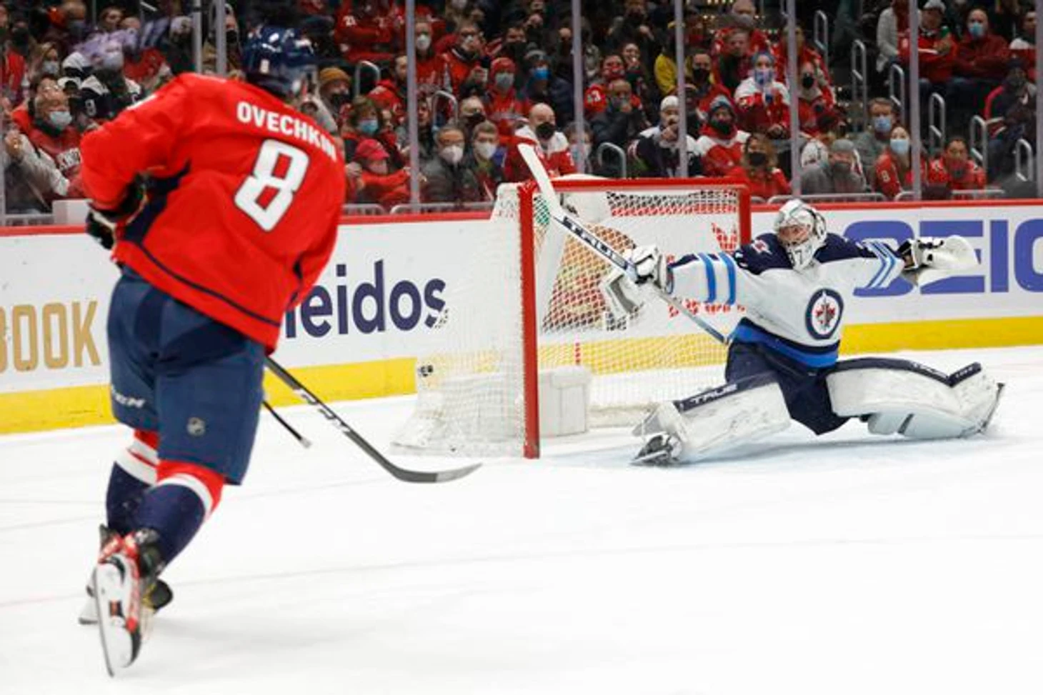 На шестой позиции последний на сегодня канадский клуб - «Виннипег Джетс». Но находится он в ТОПе засчёт того, что на заре карьеры Овечкина им не повезло оказаться в одном дивизионе с ним. Тогда «Виннипег» был ещё «Атлантой Трэшерс», и этот клуб так полюбился молодому Ови, что он штамповал голы в их сетку пачками. В прошлом выпуске, кстати, мы рассказывали, как вратарь «Атланты» Кари Лехтонен стал первой жертвой в карьере нашего нападающего. «Виннипег» переехал в Западную Конференцию аж 9 лет назад, то есть очных встреч между клубами стало меньше. Кроме того ни они, ни «Атланта» ни разу не встречались с Овечкиным в плей-офф. Просто почувствуйте, насколько большой задел в своё время сделал Ови, что «Виннипег» до сих пор в его топе. Всего же в сетку клуба влетели 50 шайб, красивая цифра.