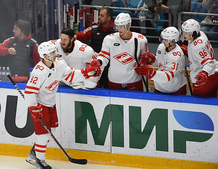 Успешная серия «Спартака» продолжается. С приходом Игоря Гришина москвичи выиграли пять матчей из шести – и при этом в каждом из них команда не отсиживалась в обороне, а старалась играть в комбинационный хоккей. «Барыс» дома в очередной раз в этом убедился.