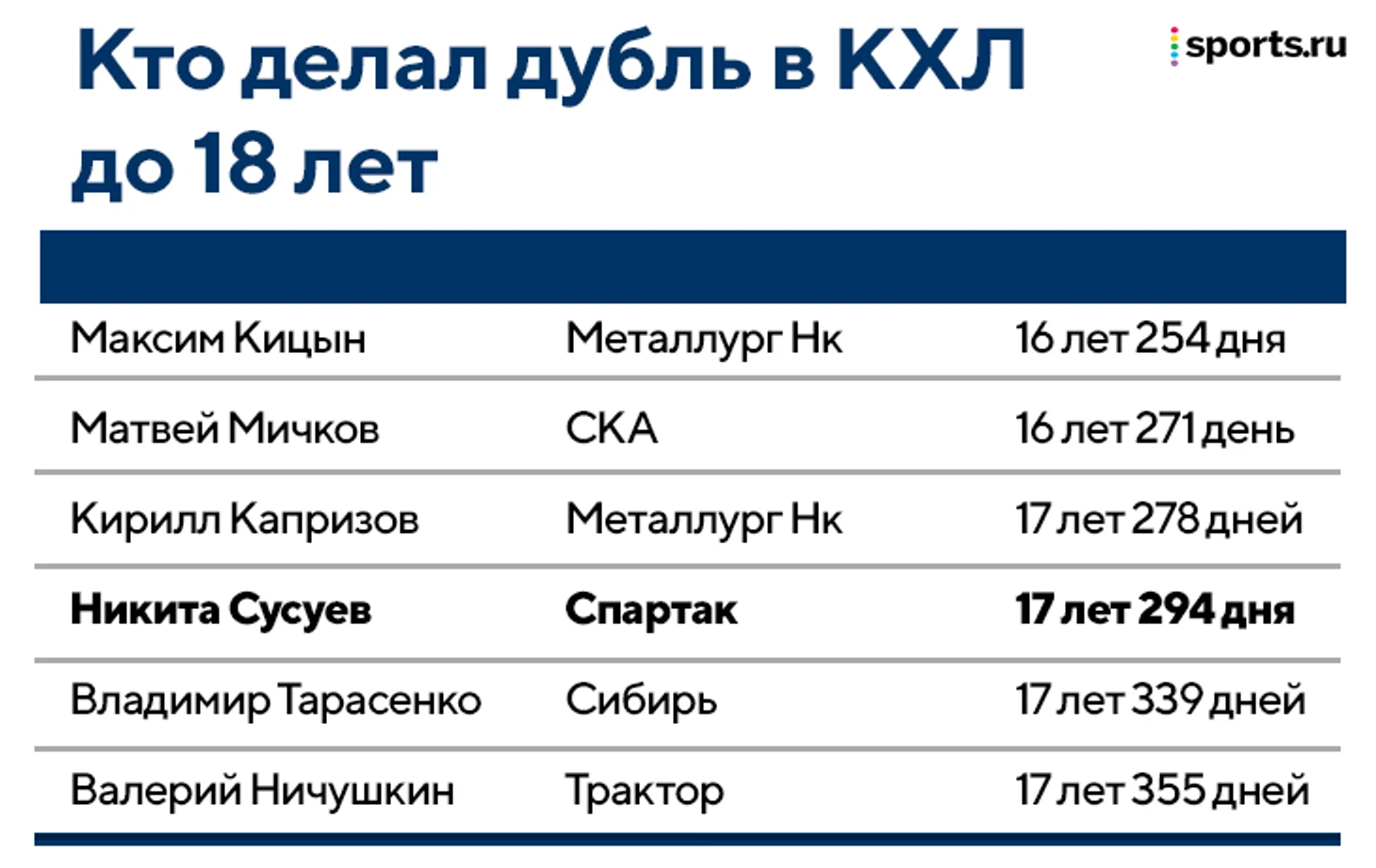 Это четвертый самый молодой дубль в истории лиги – и компания у Сусуева очень любопытная.