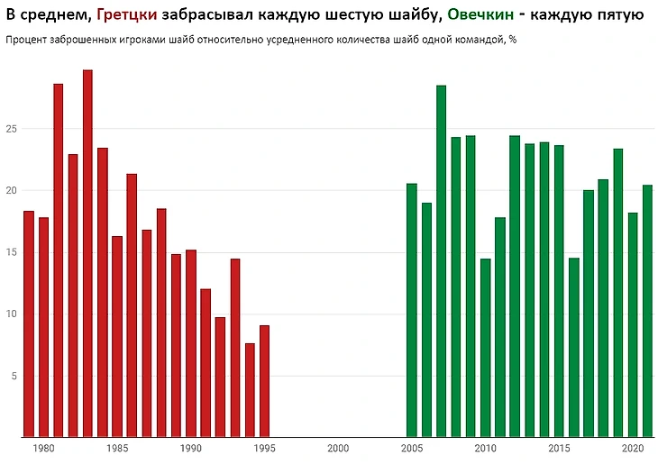 А что по вкладу Лемье, Овечкина и Гретцки в сумму заброшенных шайб?