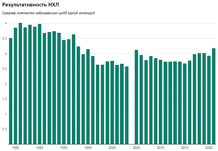 Почему результативность упала? Есть много по-разному повлиявших причин - изменение амуниции вратарей и их эволюция, изменение правил и философии игры. Рост количества высокоуровневых игроков (в том числе после развала Союза) и т.д. В этой статье можно прочитать подробнее о причинах, хотя, кажется, в ней рассмотрены не все они.