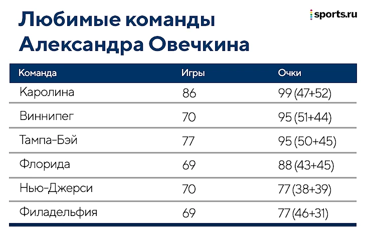 При этом результативных действий от него все-таки ждали. За 70 матчей против «Виннипега» (и «Атланты» до переезда франшизы в Канаду) Ови набрал аж 95 (51+44) очков. Ни один другой игрок в истории лиги не набирал столько во встречах с «Джетс»/«Трэшерс». Это одна из самых любимых команд Александра.