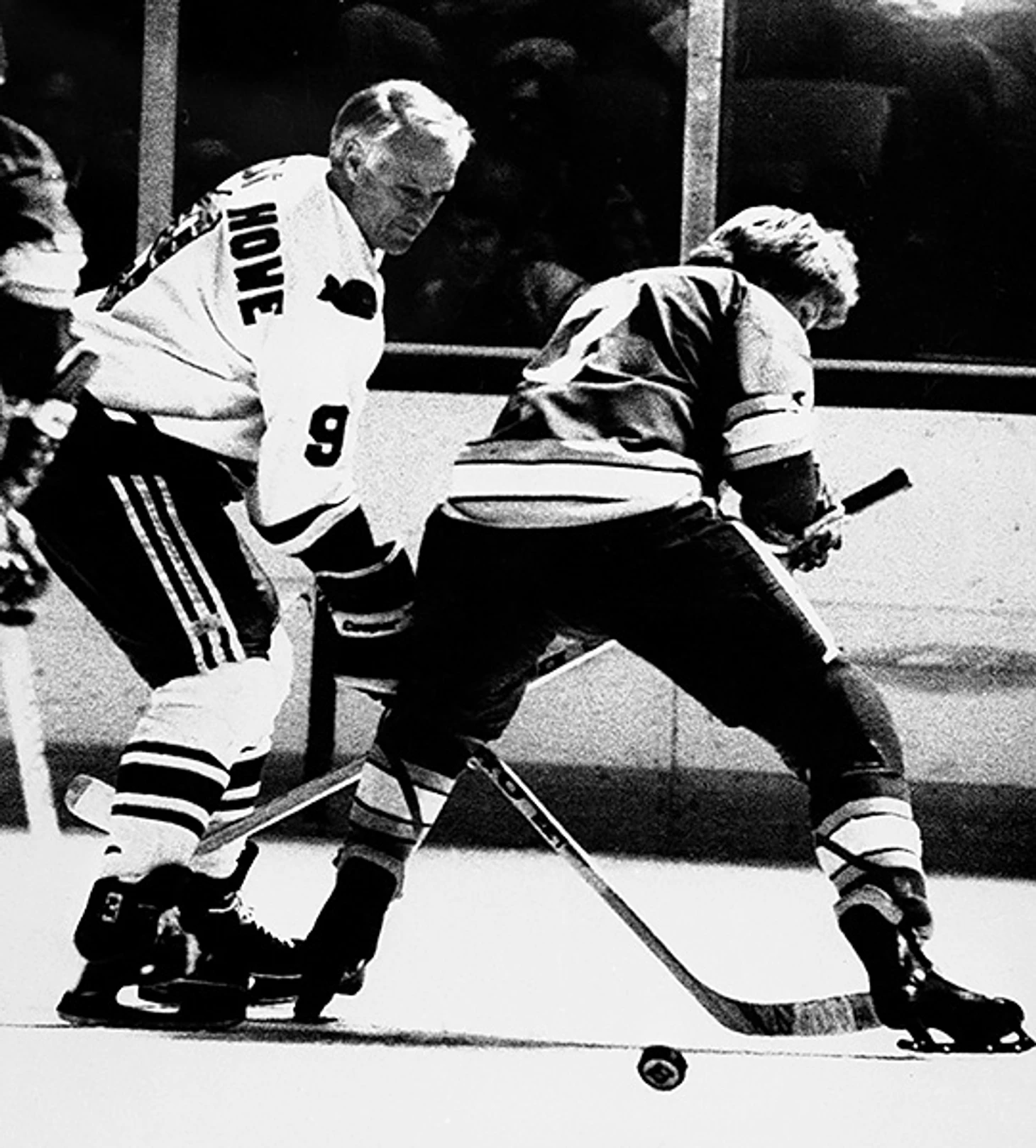 Через 3 дня после одного исторического гола Мистера Хоккея случился еще один. «Хартфорд» попал на «Монреаль» – и во второй игре серии 26-летний Марти Хоу забросил свою первую шайбу в НХЛ вообще, а его отец – последнюю. Обоим ассистировал Марк Хоу. Красивая статистика – правда, «китобои» проиграли матч 4:8, а серию 0-3.