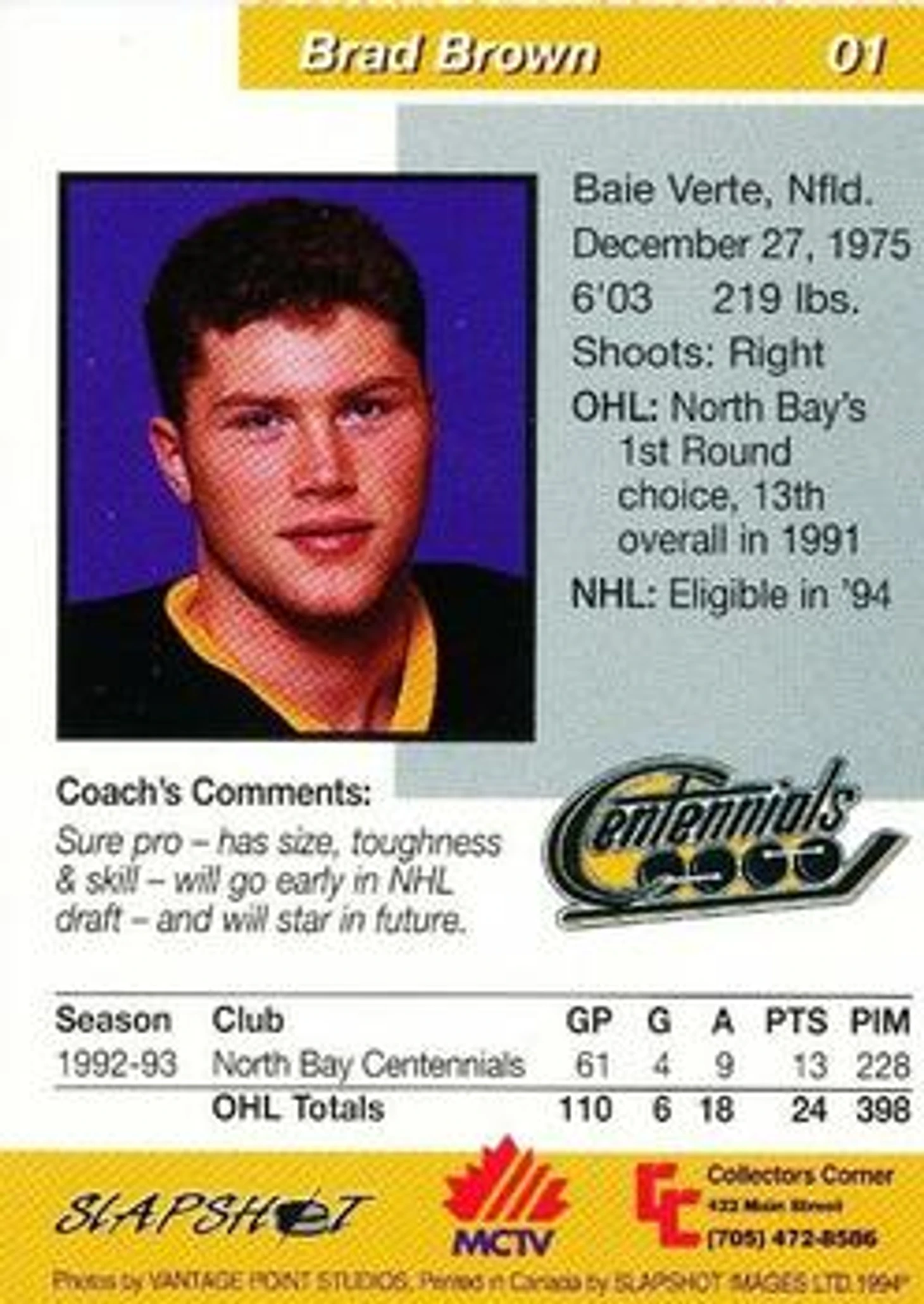 Если верить этой карточке, то Брэд Браун выглядел большим и готовым быстро начать играть в NHL, а в будущем должен был стать звездой.