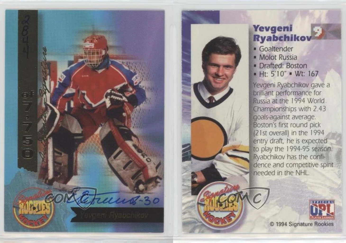 К слову, на этом же драфте под 219-м номером в девятом раунде выбрали будущую звезду NHL - Евгения Набокова, а под 217-м номером в девятом раунде Квебек взял Тима Томаса. Бостон, куда ты смотрел?