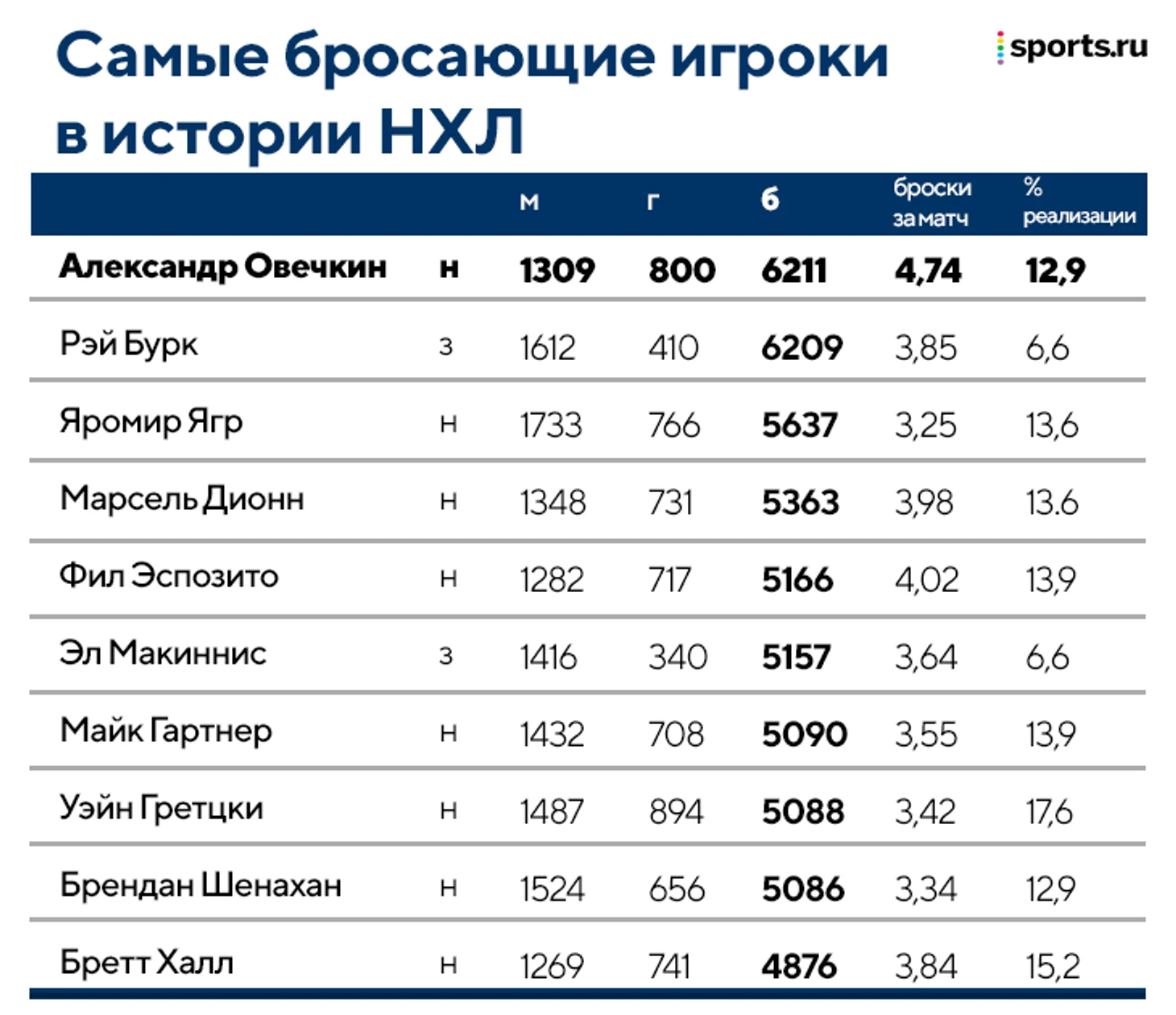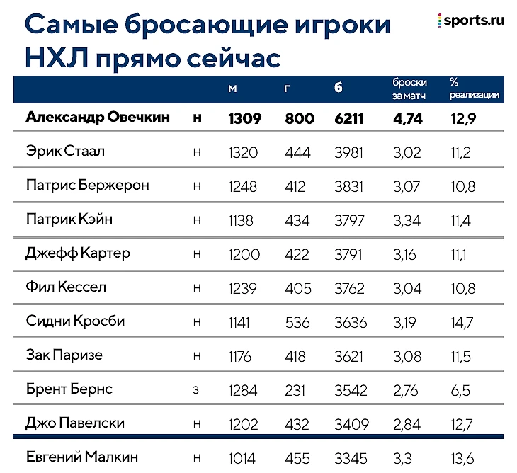 Эх, 801-го у Овечкина опять нет. Зато есть новый рекорд НХЛ по броскам – 6211!
